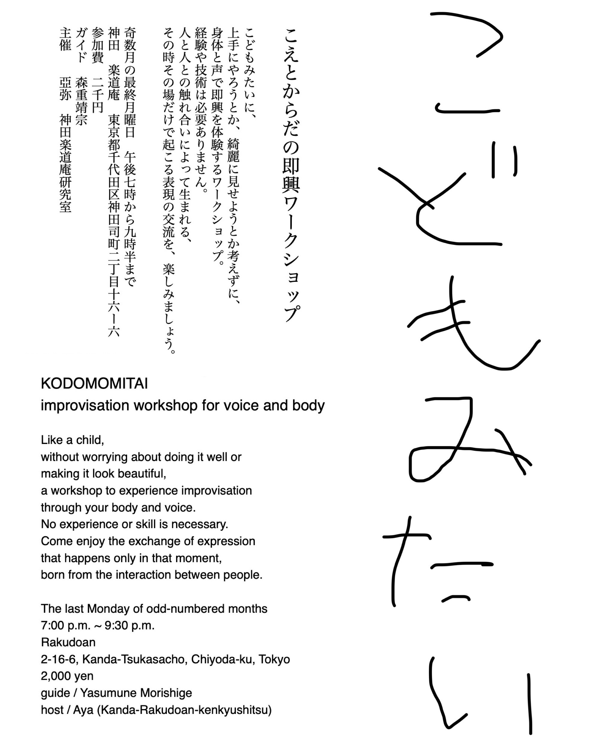 身体と声で即興を体験するワークショップ。